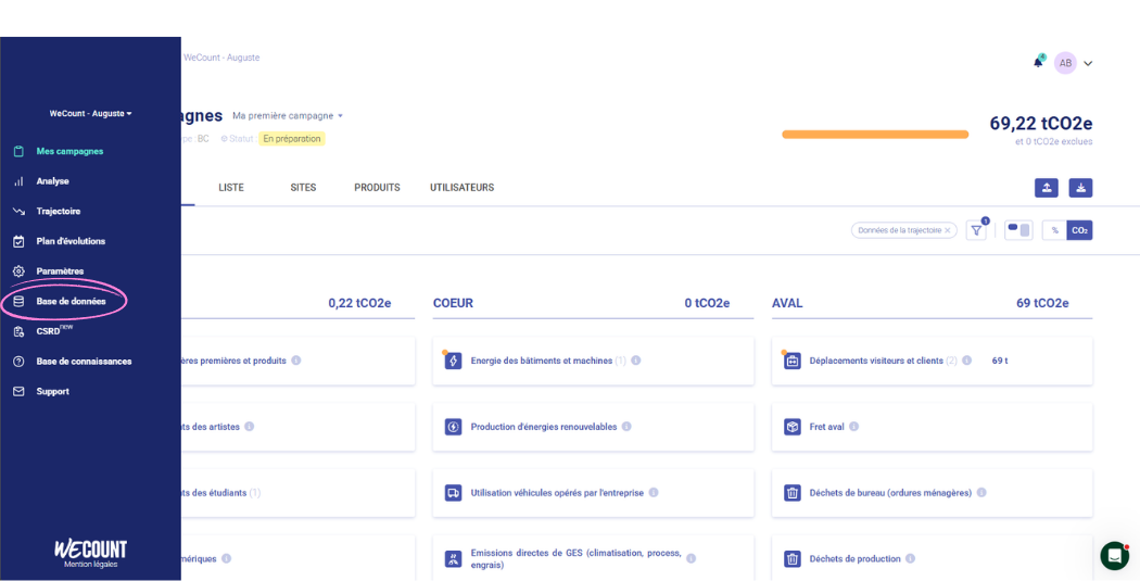- Une plateforme de reporting carbone intuitive : cette dernière vous permet de faire gagner du temps à vos équipes RSE dans la collecte de données et le reporting, le passage à l’action et le pilotage de votre stratégie climat. La plateforme dispose par exemple de modules de recommandation automatique des facteurs d’émission selon les données importées, de complétion automatique des données CSRD/VSME via vos documents (ex : DPEF) mais aussi et surtout de suggestions d’actions de réduction adaptées à vos enjeux.