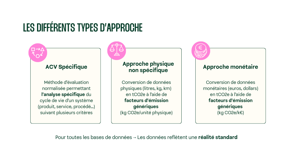 Dans l’approche liée aux données fournisseurs, ce facteur d’émission est obtenu via une Analyse du Cycle de Vie (ACV) menée par le fournisseur sur ses produits.